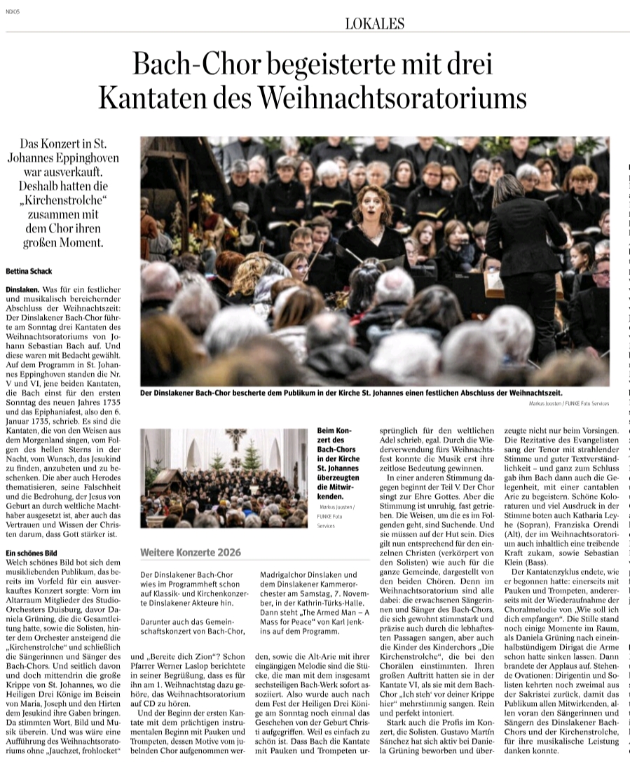 Johann Sebastian Bach, Weihnachtsoratorium I-III 10.12.2023 NRZ (jpg)